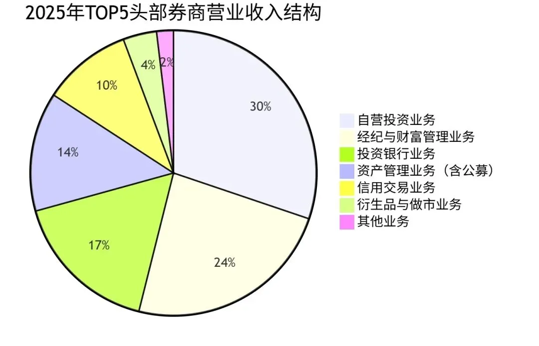 震荡市(2025 年) | 投行业务、固收自营、机构服务 | +12% | +15% | 衍生品、资管管理费 | 头部与中小券商分化加剧,头部盈利增速是行业平均的 2 倍以上 |