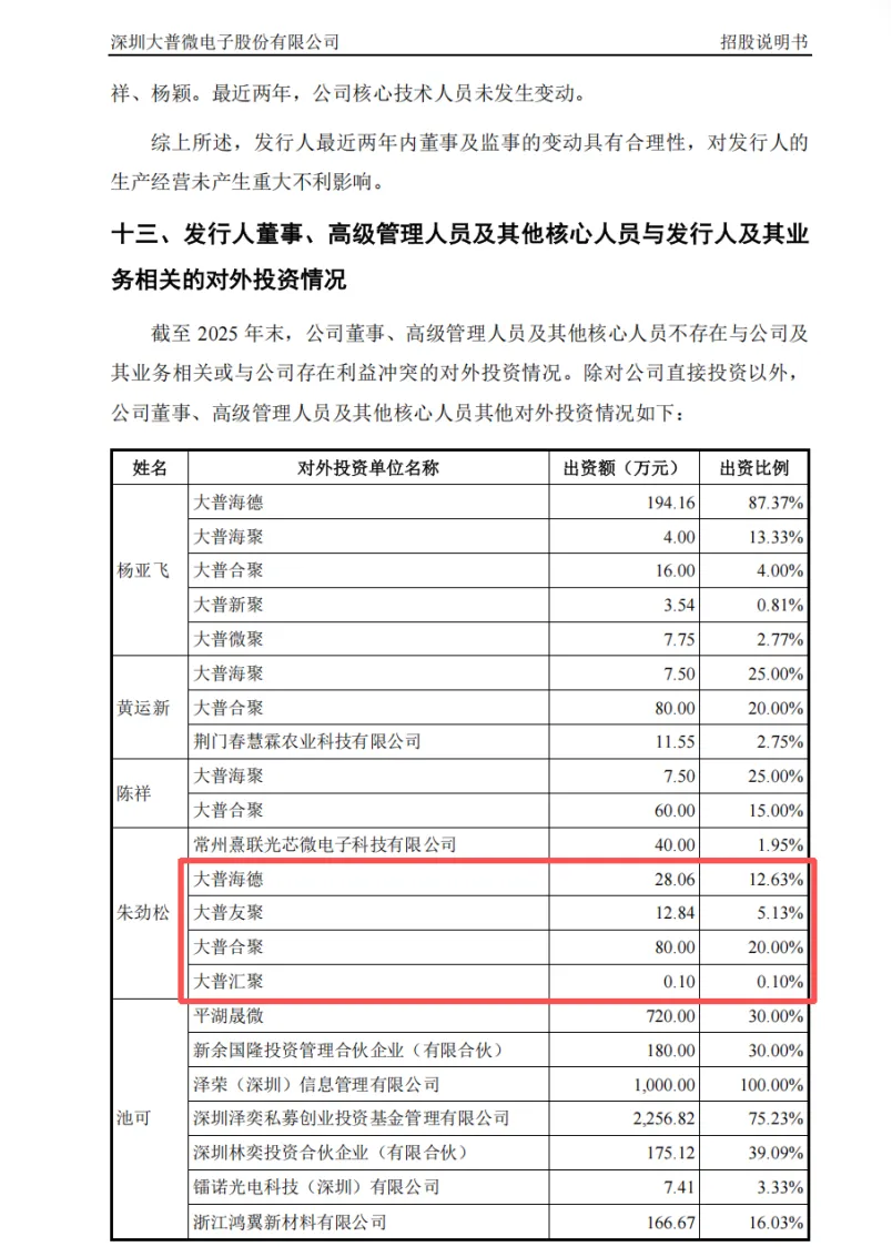 员工持股方面,招股书显示,朱劲松通过大普海德、大普友聚、大普合聚和大普汇聚4个持股平台,合计出资约121万元,对应持有公司约1060.9万股。以大普微4月21日收盘价214.55元/股计算,这部分持股市值约22.76亿元。短短5年时间,这笔投资赚了近1880倍。