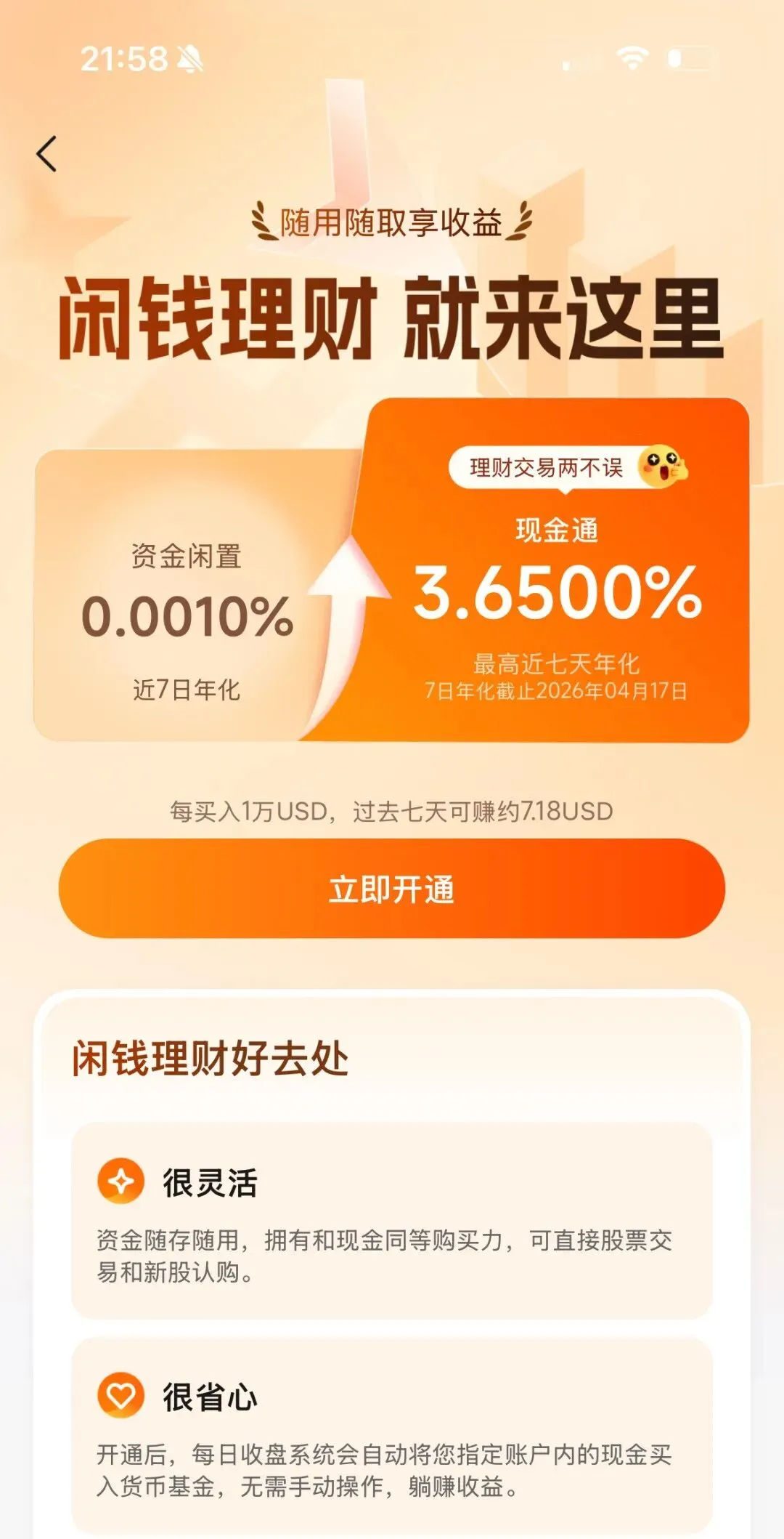 暂时有一笔闲钱懒得挪,放在现金通躺着拿收益,跟内地的余额宝差不多类似。