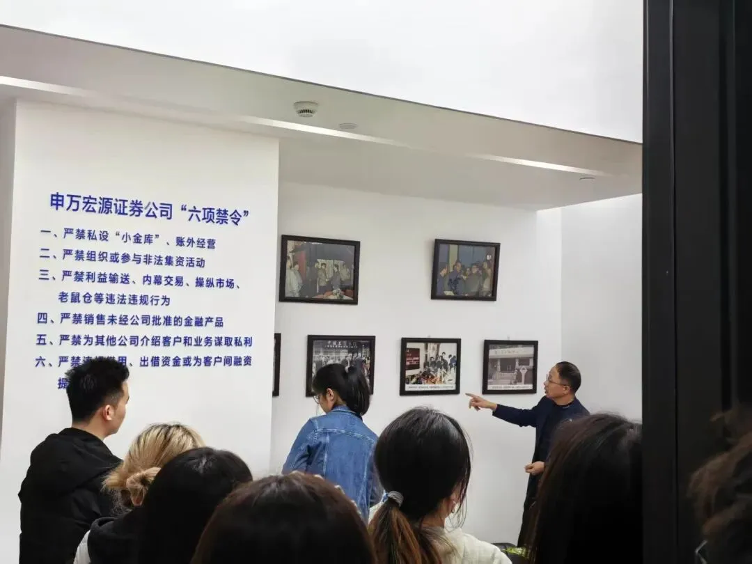 在讲解后,工作人员带领同学们参观了申万宏源的营业部,实地参观了营业部的办公区域,直观了解了券商经纪业务、客户服务等一线岗位的工作内容,打破了对券商行业的“距离感”。