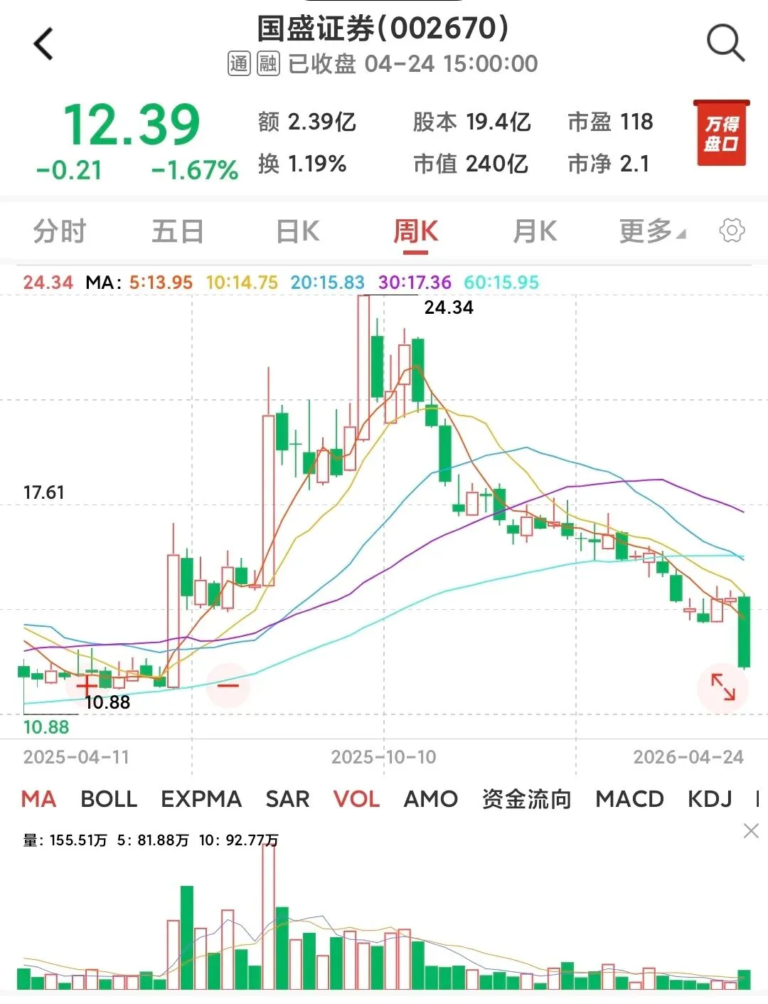 国盛证券财报发布次日,直接一字跌停,隔夜封单金额2.3亿股,流通盘筹码松动率超18%,五个交易日累计跌幅28%,总市值蒸发30.6亿元,9万余户股东全线深套。