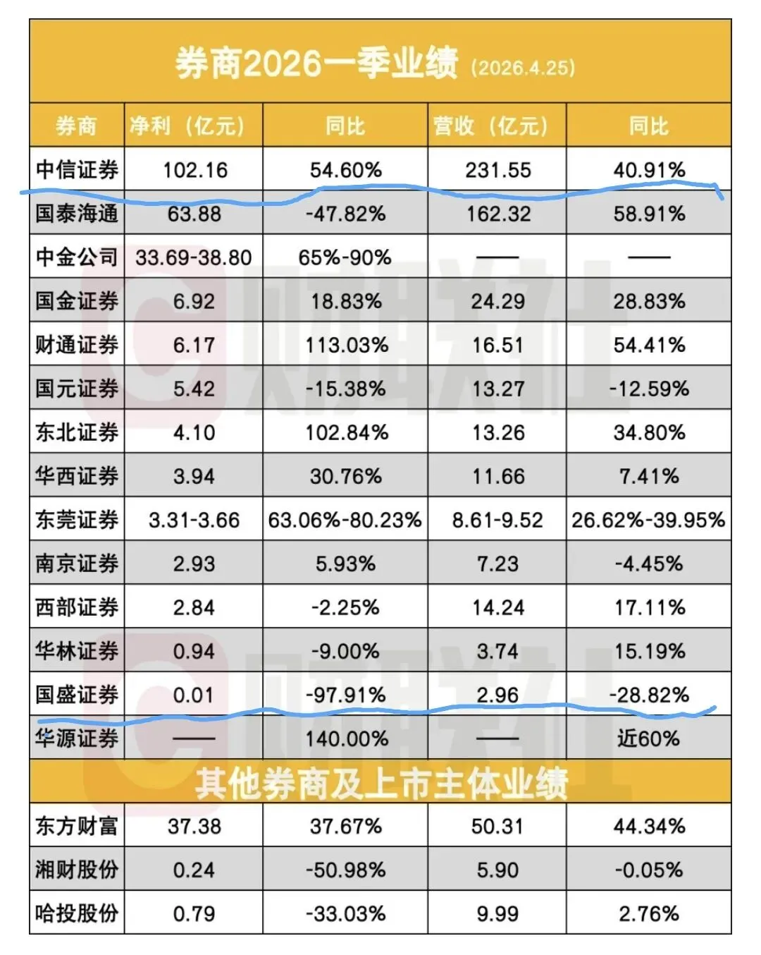 简单测算,中信一季度净利润,约为国盛的6950倍,两家券商早已不在同一竞争维度,冰冷的数据,直接拉开了行业强弱的巨大鸿沟。