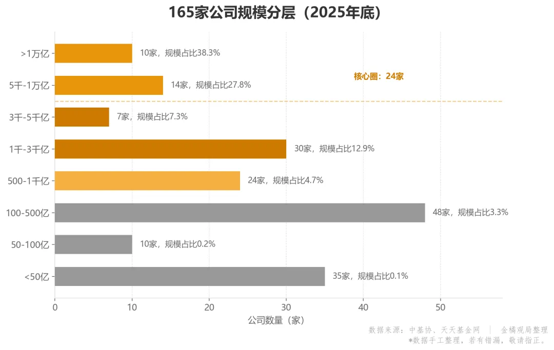截至2025年底,我们公募基金行业有150家基金管理公司,还有15家取得公募资格的资管机构(券商资管为主),一共165家左右,合计管理资产37.71万亿元。