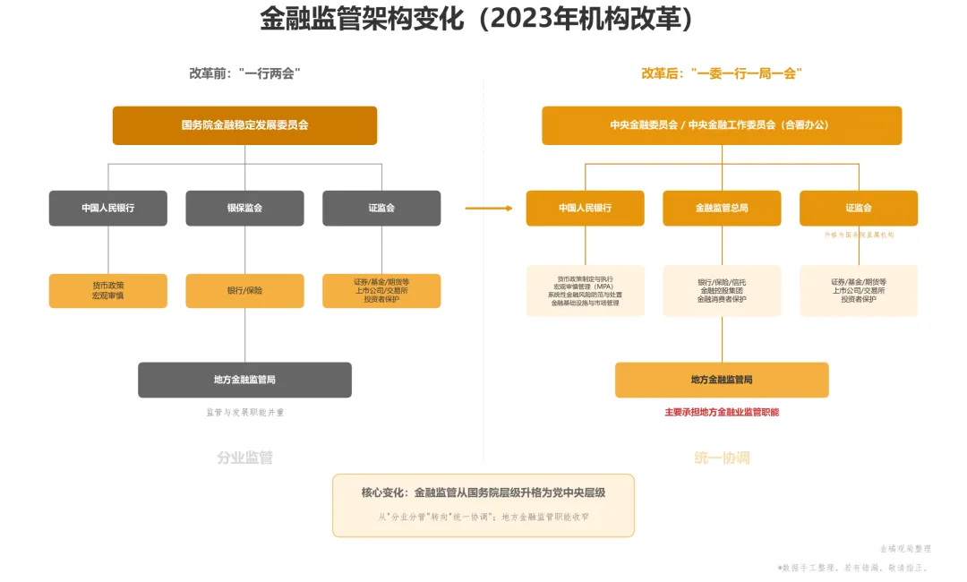 2023年机构改革之后,地方金融监管局的定位变了。从“既管监管又管发展”变成了“只管监管”。地方金融国资委的相关职能被收回中央。这背后的逻辑,与建设全国统一大市场的方向一脉相承。中央在做加法、地方在做减法,过去那种各地自成一体的格局,正在被打破。