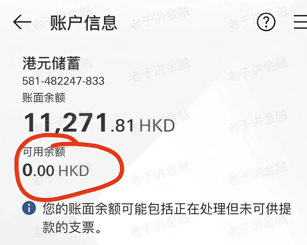 账户余额要充足,钱要是“可用”的状态,而且必须放在“港元储蓄”里面,不能放在“港元往来”里面。