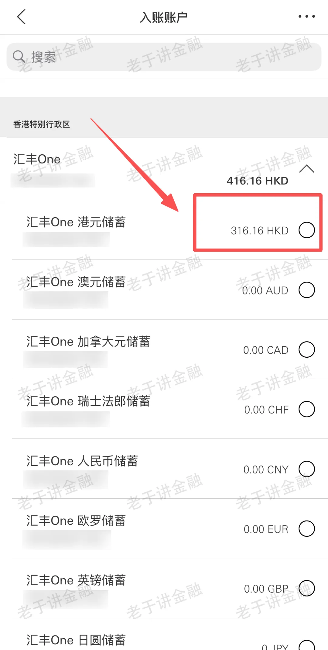选泽入账账户,点击确认「港元储蓄」。
