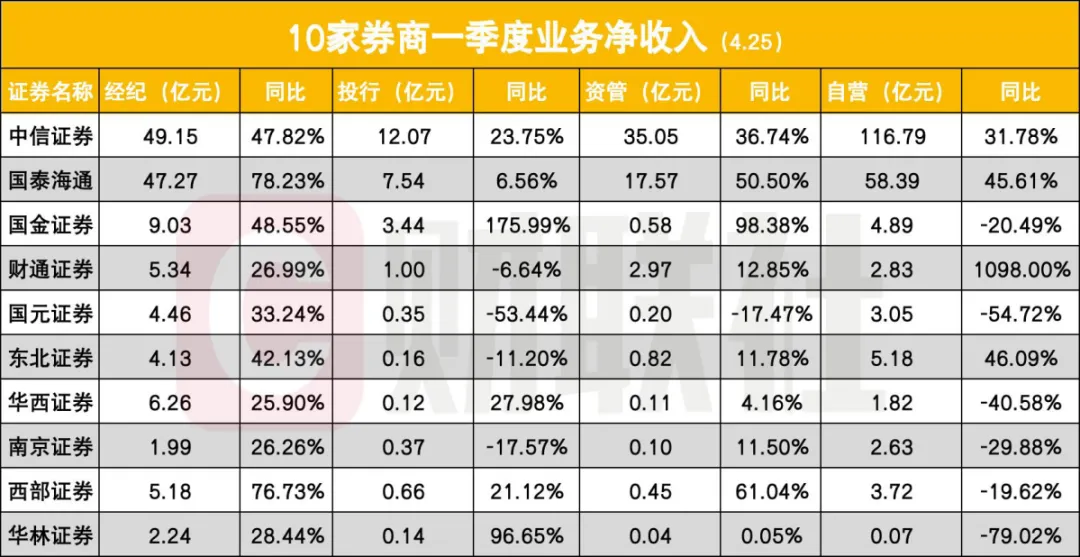 透过一季度财报数据,券商业绩的核心驱动逻辑清晰显现,自营业务成为“胜负手”,利息、经纪、投行、资管等业务协同回暖,共同支撑行业整体增长,但业务分化同样显著。