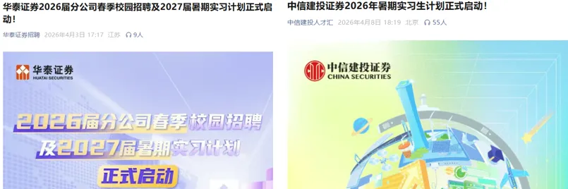 2026年春招,中信、中金、中信建投这些头部券商,都在疯狂扩招,总部岗位重启,实习计划也全部放开。