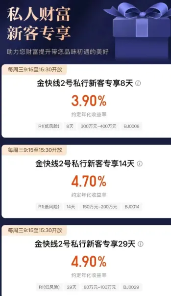 在低利率市场环境下,高净值人群对于闲置资金的配置需求愈发多元,既追求稳健安全,也看重收益效率与资金灵活性。多家主流券商针对性推出高净值新客专属大额理财活动,打破常规新客理财的额度限制,最高可投额度达500万,且以短期期限为主、收益表现突出,成为高净值新客配置短期资金的优选方向。为帮助大家快速把握核心机会,我们整理了近期市场上几家头部券商的“大额新客”产品核心要点,兼顾专业性与易懂性,供各位高净值投资者参考。