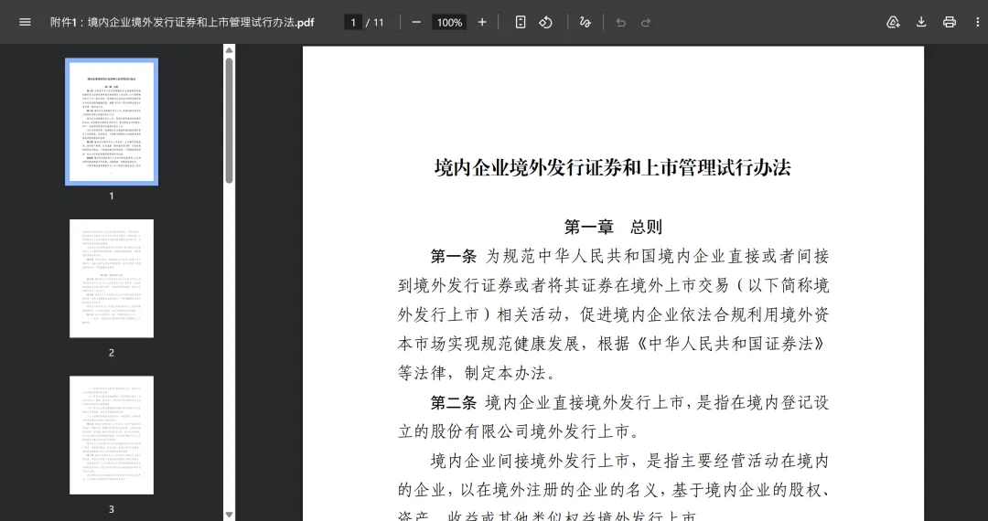 根据中国证券监督管理委员会发布的《境内企业境外发行证券和上市管理试行办法》(2023年实施):