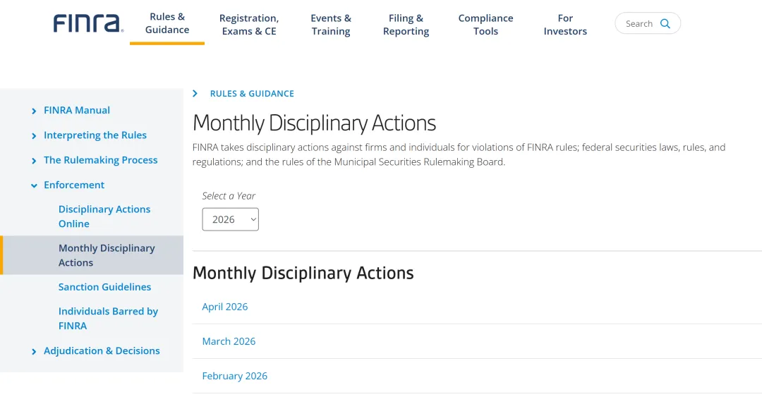 资料来源:根据 U.S. Securities and Exchange Commission、Financial Industry Regulatory Authority 公开执法信息及监管公告整理。