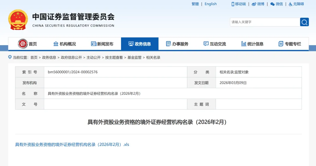 (备案仅表示该机构已纳入证监会跨境监管框架,并不代表其可从事所有境外资本市场业务。)