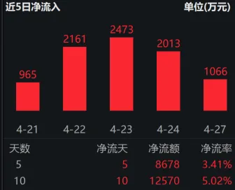 最近连续10日净流入,市场资金对这个标的的关注度在提升。