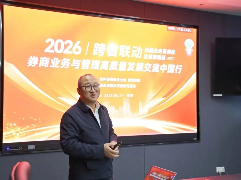 2026年4月16日,由券业观察联合苏州证券同业公会主办的《2026券商业务与管理高质量发展交流中国行系列活动(苏州站)》在苏州东吴证券投资者教育基地成功举行。