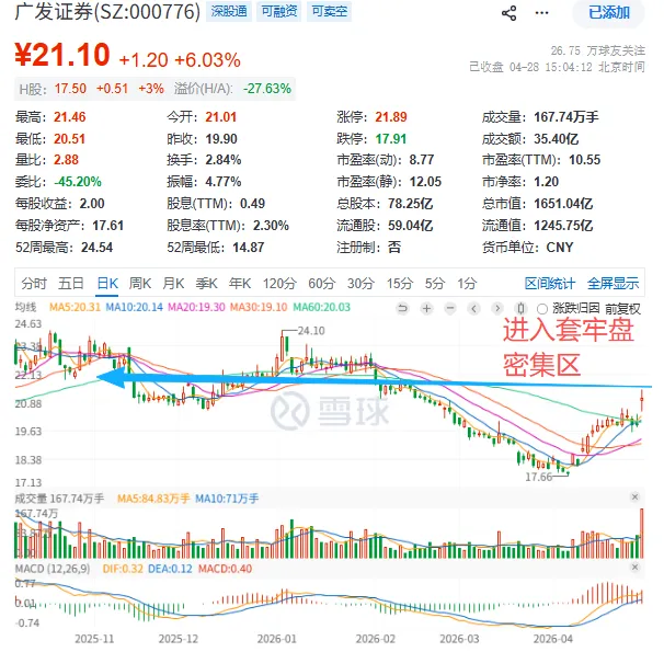 看多券商就是看多上证,看多上证就是看多券商2.在4月10日中信证券放量110个亿之后,依然每天有业绩不被市场认可的中小券商杀跌5-10个点,足以证明此阶段资金就是认业绩,这一阶段分化非常严重。3.4月-4月底的窗口,是业绩预期强烈的影响时期,资金去做业绩预期提前布局,比较典型的就是同花顺、广发证券、华泰证券,在业绩还未出来前,就一路拉小涨。1.上证指数这里小调整结束后,进入下一个波段,从黑天鹅后的修复进入反转波段,反转波段走完之后才是主升波段。市场情绪面悄悄在发生变化,因为这里实际上已经放量站上了60日线,做一个小回踩确认。2.全球都已经完全忽视战争和海峡的扰动进入KTV阶段,台湾资本市场更加疯狂,不仅开始疯狂消费,甚至开始出现员工“辞退”老板的场面,这无疑宣告股市已经过热,大A后续也无法避免。货币和情绪面是会传导的,所以一直判断这里不会有深调,只要盘中下跌机构和大资金马上就会吃货。3.随着情绪回暖,4月底5月初业绩预期将不再是影响的因素,悲观只看业绩预期的阶段会过去。4.同花顺、广发都进入了筹码套牢区域,中信、华泰稍后也会达到,必须要单个股放大量,或者软件板块带动同花顺去突破。这种概率比较低,单个股上攻必被套牢盘砸,今天的广发就是个例子。更加合理的情况就是板块联动,通过板块内低位的新的逻辑的个股走出来,带动板块集体上攻。在进入下一阶段后,只做安全大票的逻辑会向情绪小票偏移,非银金融进入二阶段后,5月小票会逐步开始展现弹性。1.上证指数已经连续4个交易日强于创业板指数,龙头股和龙头板块补跌完转入震荡,上证也将进入下一个阶段。2.上证指数的3个阶段:复苏浪、反转浪、主升浪(主升浪也会有多段),对应的非银金融也会多个阶段上涨,多个阶段的逻辑会有不同。3.等所有人都看明白是业绩逻辑的时候,就是逻辑尾声,小票的情绪将随着市场情绪从冰点-->15°--->30°的情绪温度面开始扭转。就像2024.9.17开始20cm的银之杰,2025.6.25开始20cm的指南针,目前时候未到。4.相信上证指数会大涨,券商就会大涨;相信券商大涨,上证指数就会大涨。它两的关系就像大A个股的业绩和股价的走势,有的时候股价先走,出业绩见光死,有的时候业绩出了也没反应(很多朋友有,那我直接点名国泰海通),憋着所有利好等一波爆发。只要它没有变,大A就还是那个大A,券商就还是那个券商。