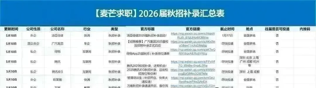 春招+秋招+补录+实习+寒暑假实习+求职资料