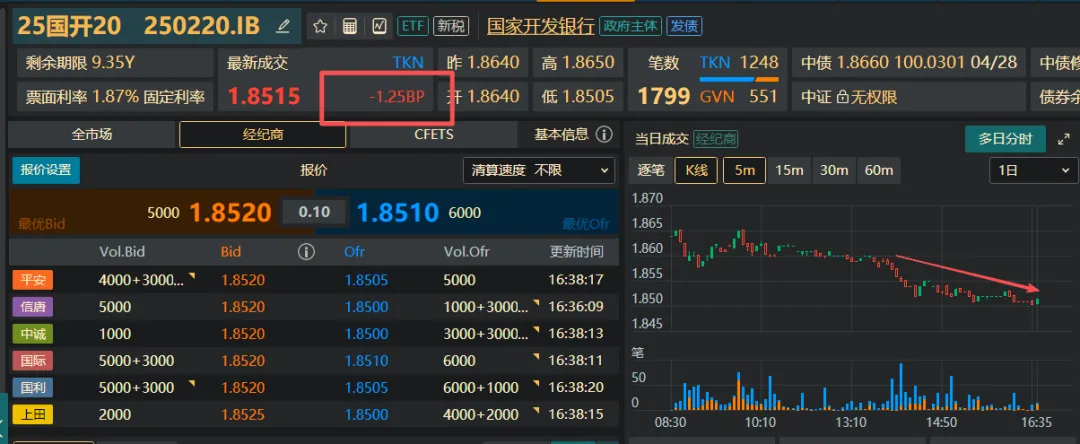 ①、咱们昨天就说了,节前钱多、配置盘饥渴,今天一开盘,基哥就扑向国开债。250215开盘直接下行1BP,全天干下去超2BP。250220一看,兄弟你这么猛?尾盘赶紧跟了一波。