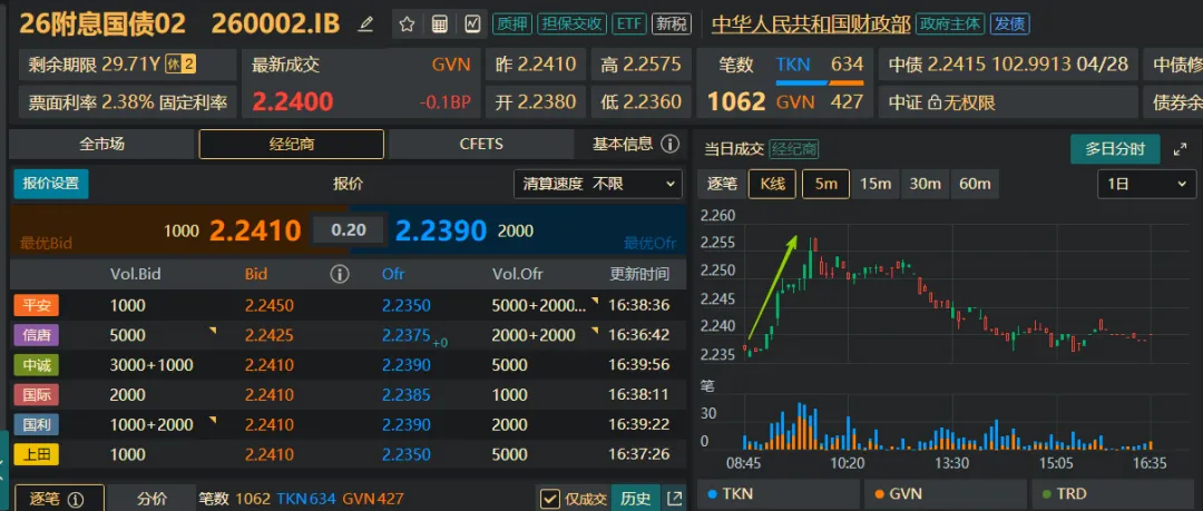 新券26特2早盘带了波节奏,但中间有人抛2602搞换券,把2602一度砸上来1.75BP。虽然2602已经很难借券了,但这帮做新老券利差的,节前也不消停。