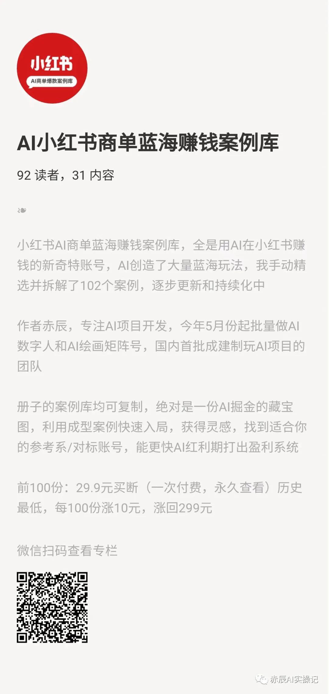 当然,小红书的客户资源获取策略离不开高质量的内容。OK,今天的内容就到这,近期也整理了大量的目前在AI小红书商单变现的案例,不同种类,持续每天更新,感兴趣可扫码获取!如果想学习更多AI技能,比如说关于职场,关于怎么样利用AI来提高你的效率,新媒体等等的问题,又或者对AI项目变现实战感兴趣也可加我的微信。