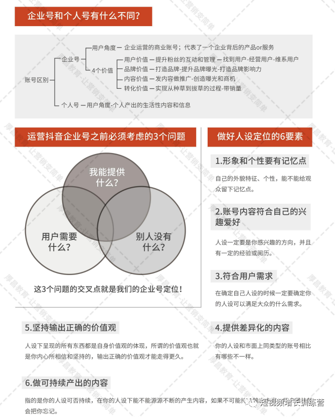 低成本获客是每一个企业梦寐以求的事。 传统营销渠道效果下滑、流量触顶怎样找到新的、有效果的营销渠道呢? 企业短视频绝对是新的企业营销高地 我们的学员能够变现过千万,涨粉过百万就是因为掌握了底层逻辑和方法论形成了符合自己账号定位的运营方法 今天,我们就把这套精心总结的《企业短视频获客运营全攻略》免费分享给大家 《企业短视频获客运营全攻略》攻略包含7大部分内容 1、确定账号定位2、注册账号3、熟悉功能和操作4、内容产出5、建立团队6、运营方法7、商业变现 为了方便有些同学想要直接领取资料,我们先把领取方式放在这里扫码添加助理,回复“短视频攻略”即可免费领取 下面二黑带大家来继续看看攻略内包含了什么内容 1确定账号定位账号定位,就决定了账号的发展目的。你的短视频账号是泯然众人还是独树一帜就看如何定位。确定账号定位,必须确定唯一的核心指标。 根据不同的核心指标,将要制定不同的运营策略和方法 关于企业号和个人号 有什么区别,做之前要考虑的问题,还有人设定位的6要素 2注册账号注册账号、账号设置、如何认证全流程 3内容产出为什么打开抖音总有些内容你会忍不住去观看,点赞,评论和转发?其实很多视频都是精心设计过的短时频爆火的成功案例爆火原因不尽相同但是还是有很多经验可以借鉴的 短视频的5大类型 还有家装、情感、减肥、旅游、教育、招商加盟、医疗7大行业选题细分 内容太多,很难每张都截图下来后面还有团队组建、运营方法、商业变现、注意事项等N多内容...... 带你全面了解抖音运营机制,上手企业短视频获客 扫码添加助理,回复“短视频攻略”即可免费领取-END-课程推荐