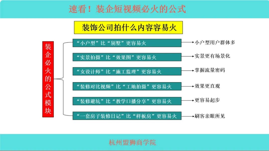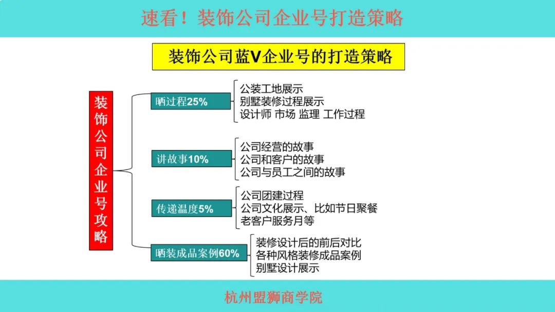 2、掌握装修行业做同城抖音的正确路径、转化公式,及短视频、直播、投放3个环节的核心策略、方法和技巧;