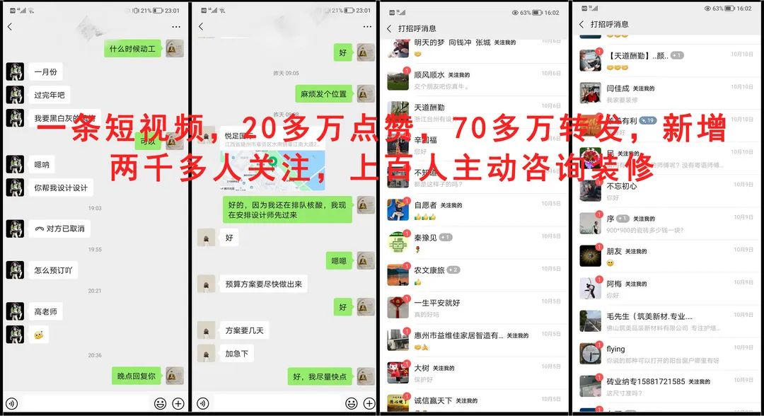 2、流量:短视频+直播是目前客流量最大的,掌握流量入口才能获得更多装修客户,才能让业主主动找你装修;