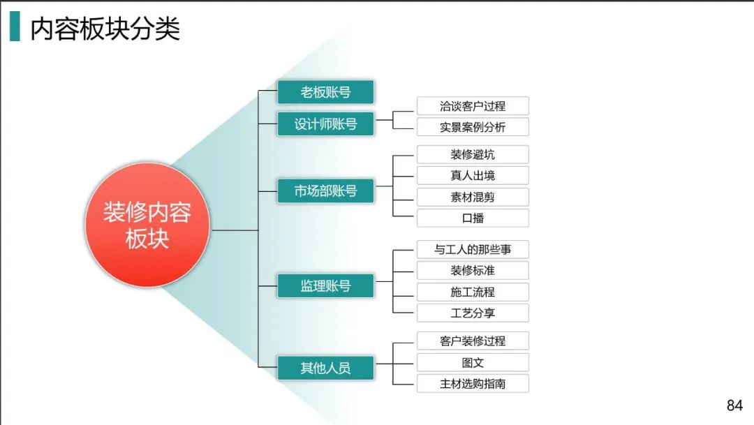 4、客户:当下80%的人平时花的时间最多,看的最多的内容就是短视频+直播,因此装修公司老板一定要让自己的公司、实体店、工地现场、设计师、业务员出现在短视频、直播间里,让有装修需求的业主第一时间认识你,了解你,最终选择你!