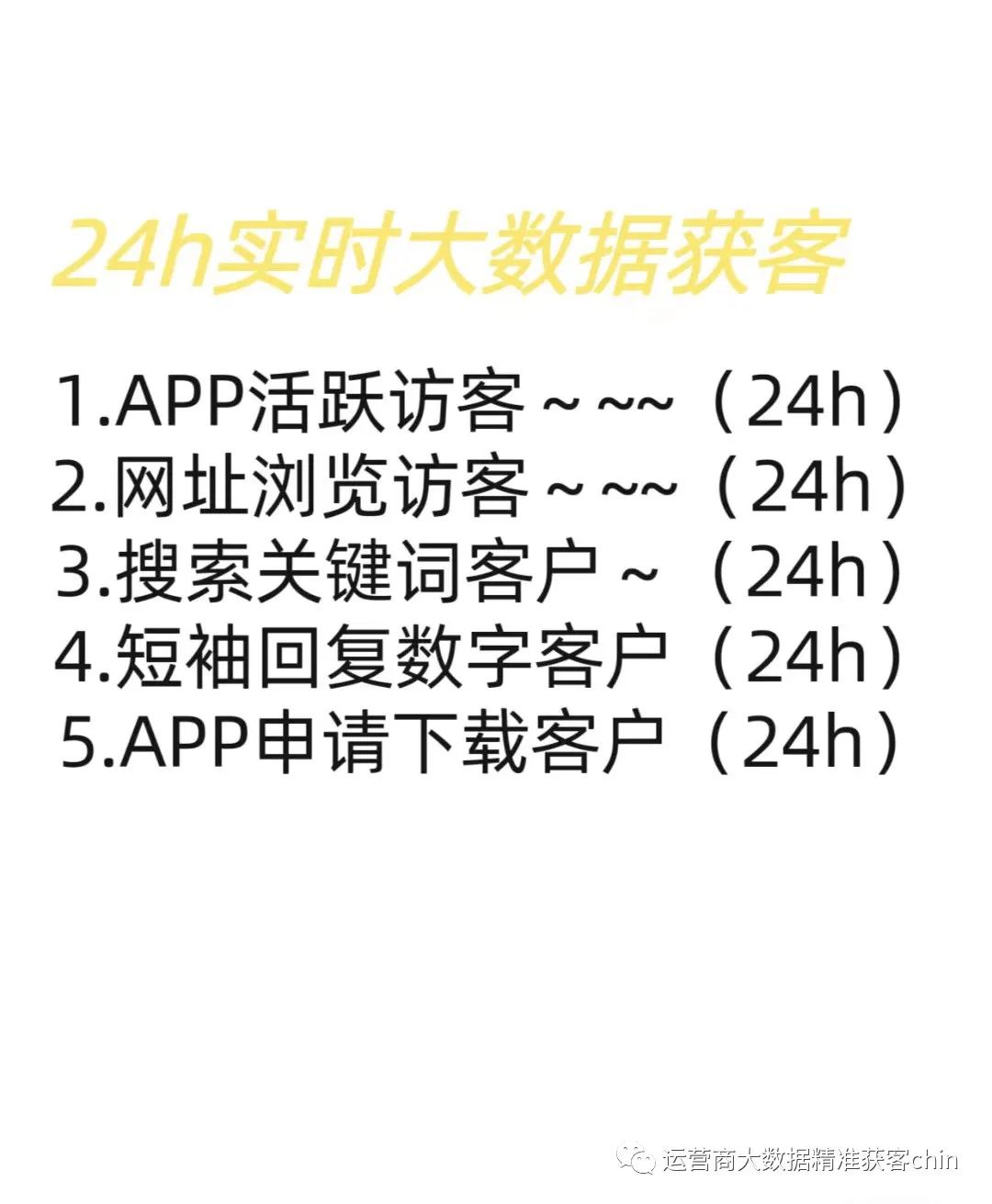 4.短信息/关键词:如短信接收人群,关键词搜索人群进行抓取。(自己的,同行竞争对手的均可)去精准定位目标人群。企业获取精准备目标客户群体,而且获取的实时数据会进行脱敏处理,从而规避了法律风险,企业可以利用运营商大数据提供的精准客户资源去外呼或者V幸直接触达意向客户数据信息,去转化和成交。大大提高转化率和效益