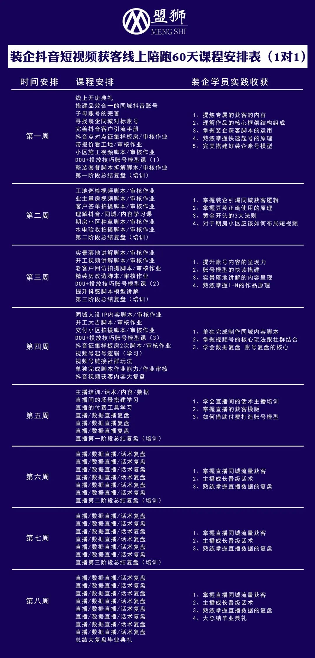 3、建立以数据为基础的科学运营方法,具备不断优化、提升抖音账号转化率的能力,有选题库、圈子、直播,辅助你解决落地过程中的问题。让你一个月实现单账号单月破200组,一年产值破5000万的打发,让你员工学会直播同城获客、3条作品迅速获客、7天必签抖音单。