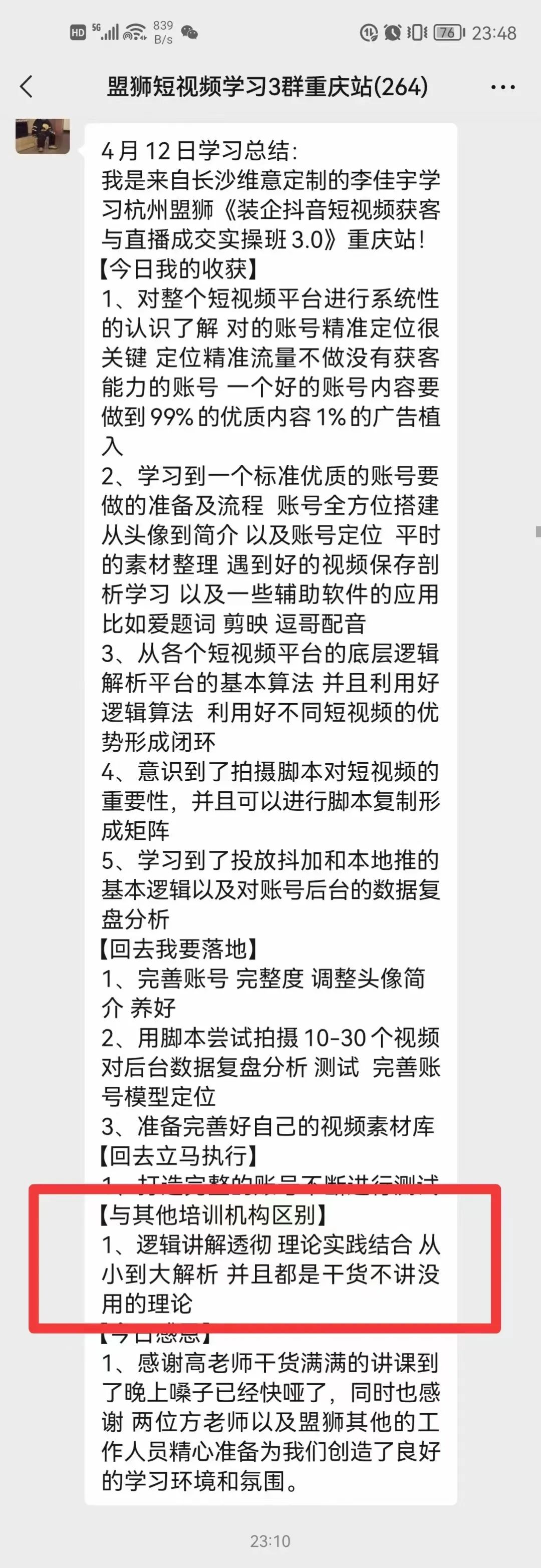 学员总结分享“不讲获客只讲网红与流量的就是耍流氓”