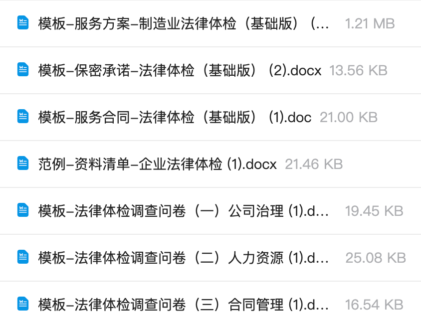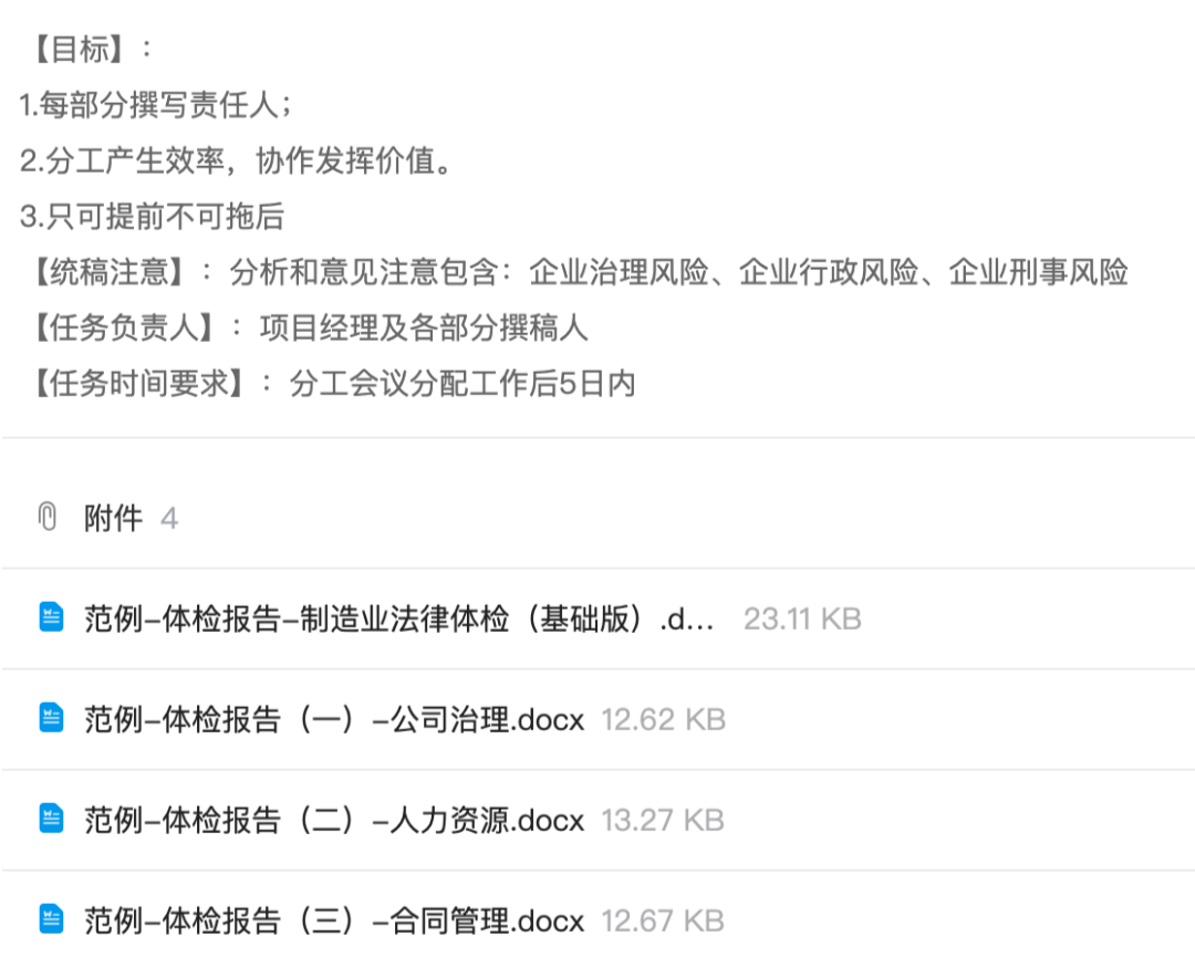 典型案例:江苏知到律师事务所为制造业企业量身定制了「法律体检」专项初级服务,从企业治理、人力资源、合同管理 3 大板块入手,全面排查经营风险。