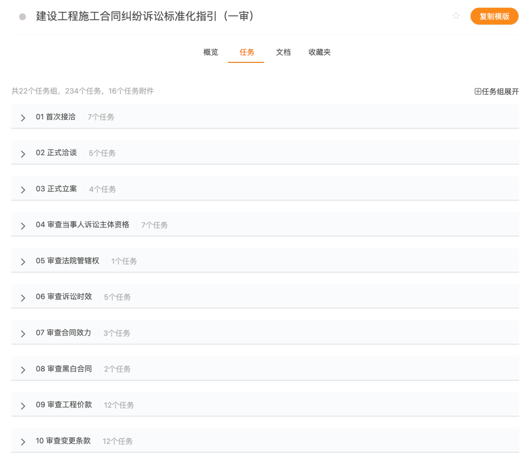 律所甚至可以将法律服务产品的项目模板直接展示给客户,让服务阶段、内容、标准成为客户可衡量的、具体的、专业的服务事项,从而获得更高的性价比与竞争优势。