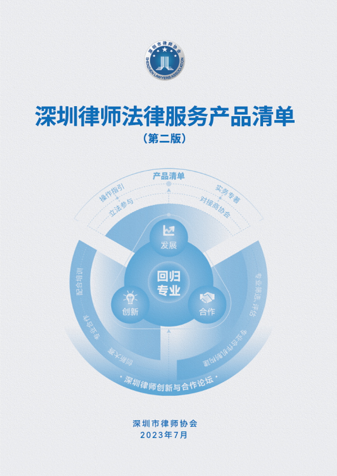深圳市律师协会在今年 9 月对外发布《深圳律师法律服务产品清单(第二版)》,收录了 18 大类、共计 970 项深圳律师法律服务产品,其中不仅有传统法律服务,也不乏与新技术、新商业模式、新社会趋势有关的新型法律服务,能够满足不同行业、不同对象的法律需求。