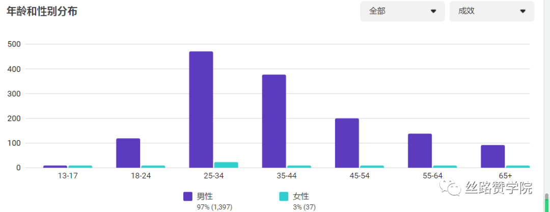 根据FB数据调查,丝印搜索人群年龄分布在25-45岁之间,性别为男性。