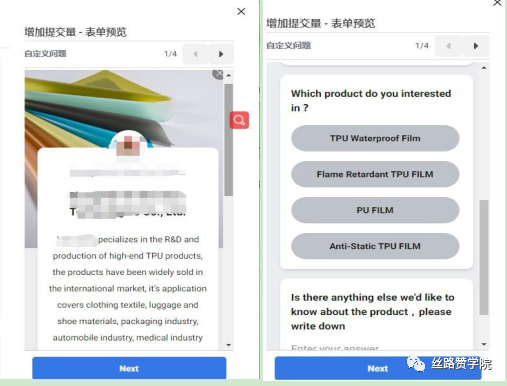 因为目前潜在表单是B端效果最佳的获客方式之一,所以在表单的问题设置上,我们设定自定义问题,帮助H客户获得最有价值信息。表单问题设定3个最佳,从基础到核心产品需求的获取,然后再获取联系方式。