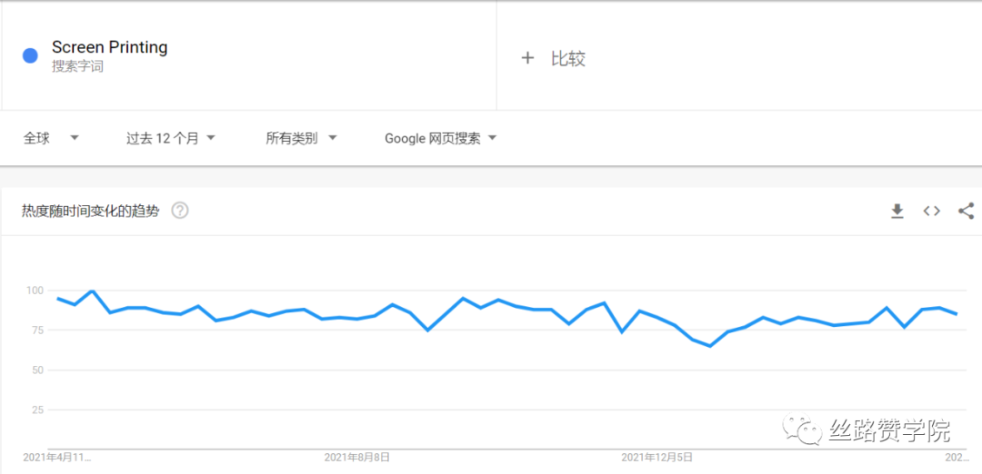 通过谷歌趋势可以看到,丝印核心词(Screen Printing)的搜索波动比较平稳,3—5月搜索量较高,搜索热度较高地区是美国,新西兰,菲律宾,加纳,斯里兰卡。