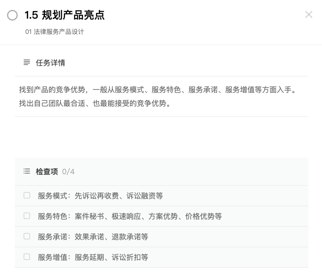 (图片来源:Alpha 系统“法律服务产品打造与手册制作”项目模板)