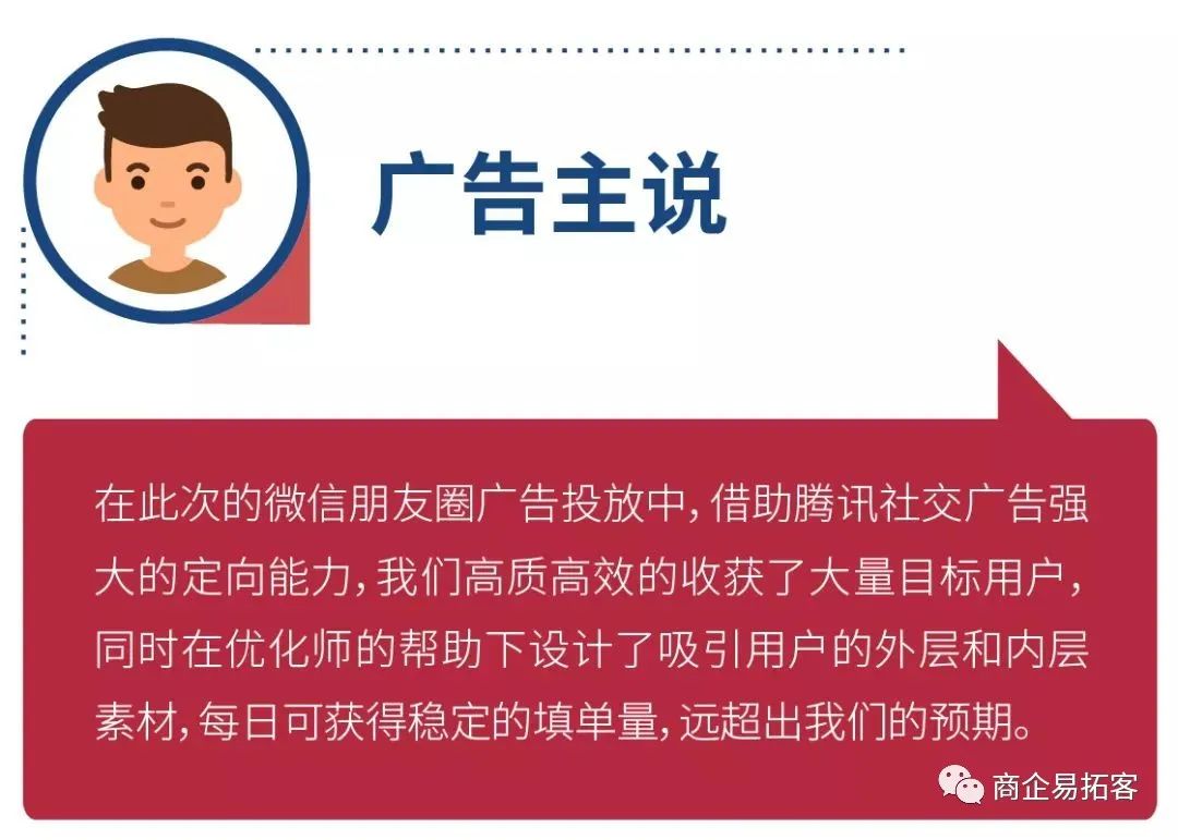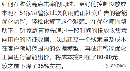 51家庭管家在此次的微信朋友圈广告投放中,通过巧妙定向、优质创意、优惠活动及智能优化的使用,收获了如下效果: