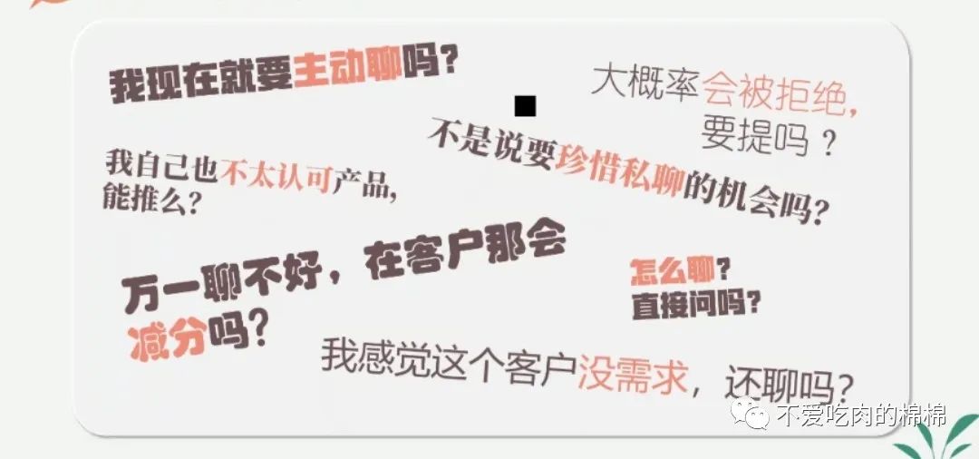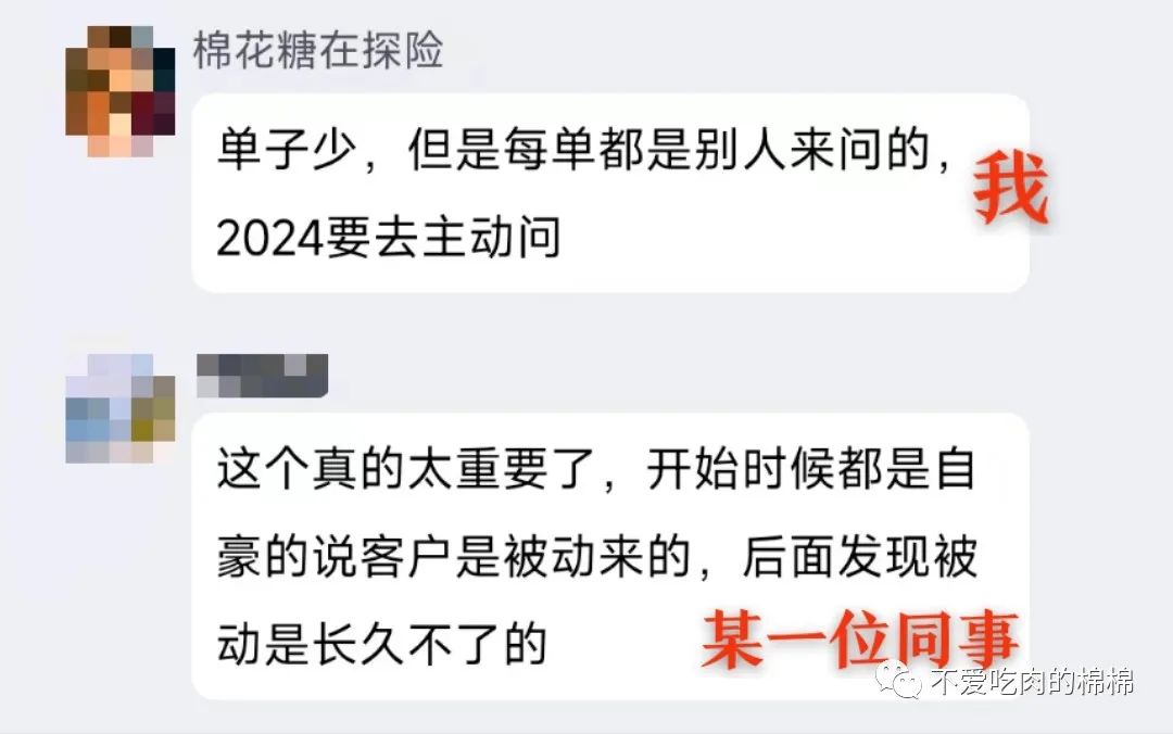她分享了一句话,我觉得一语中的。积极的去主动获客,自己去聊来的才是我们的战利品,才是我们能有饭吃的本事。