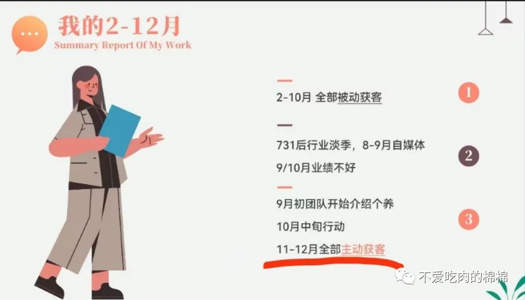 今天听了团队一个小伙伴的分享,她的主题是主动获客,跟我2024年想突破的主题不谋而合。 以下PPT图片来源于@佳月