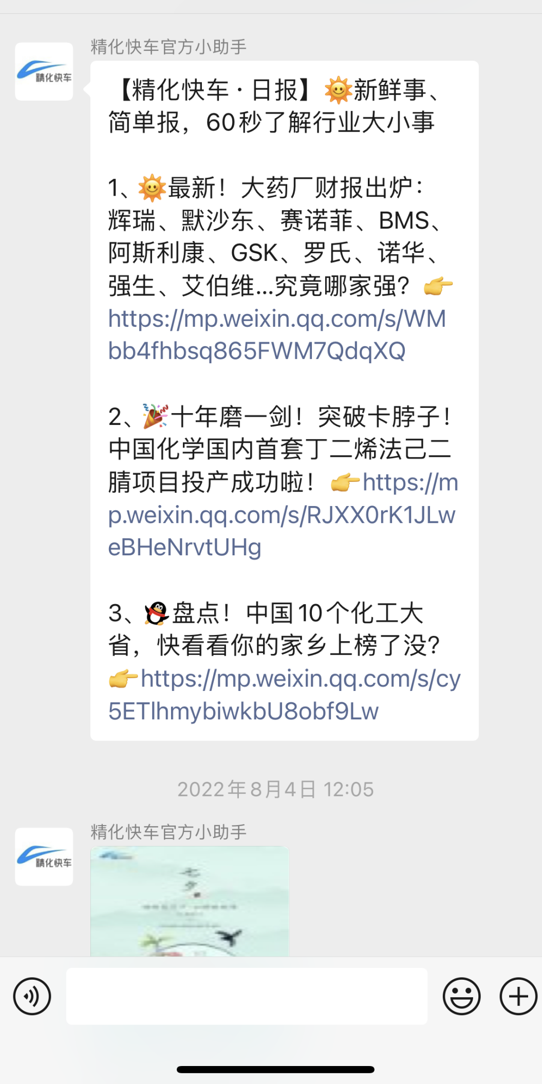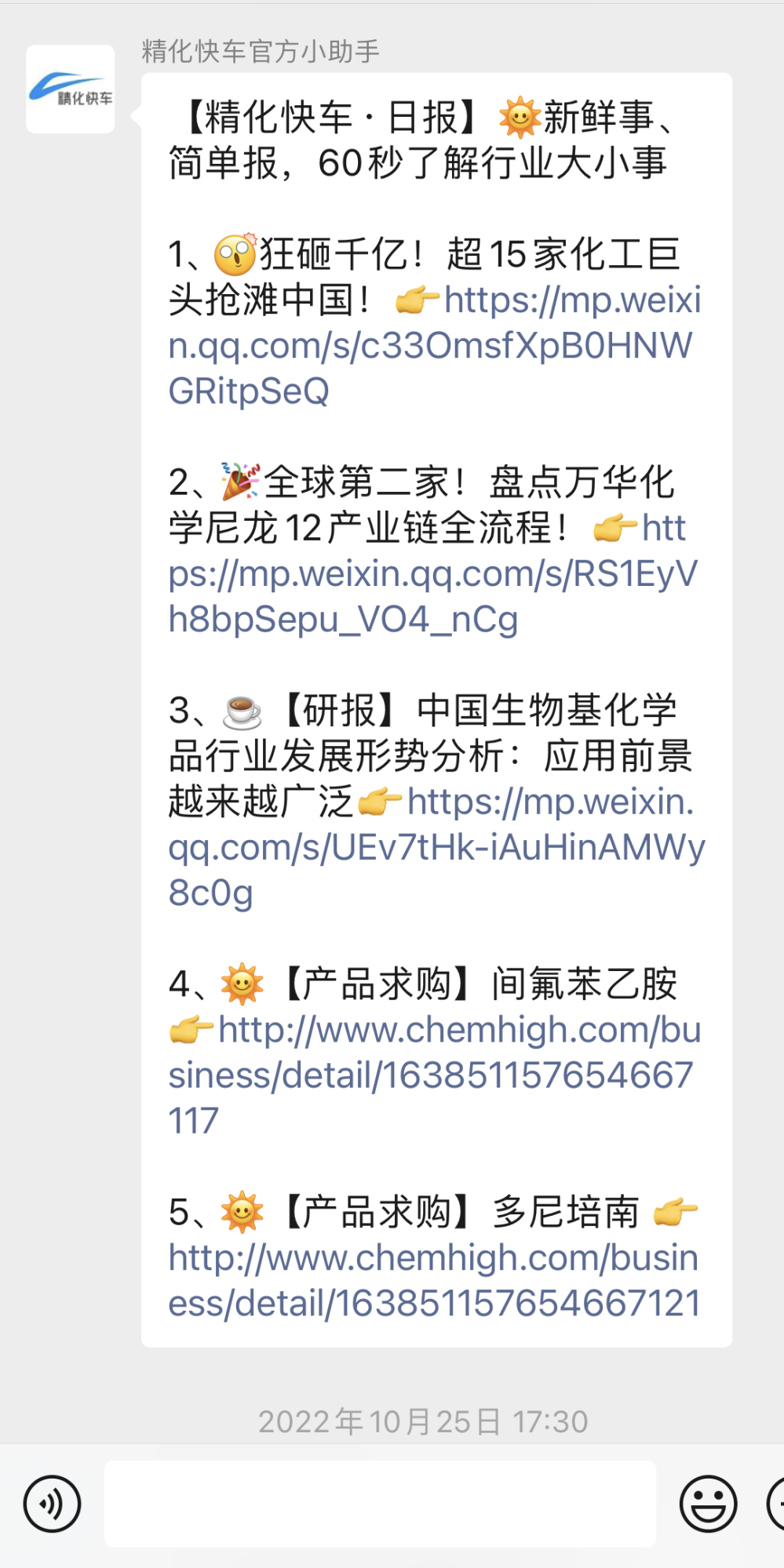 每天推送 精化快讯 ,帮助大家即时掌握第一手资讯。