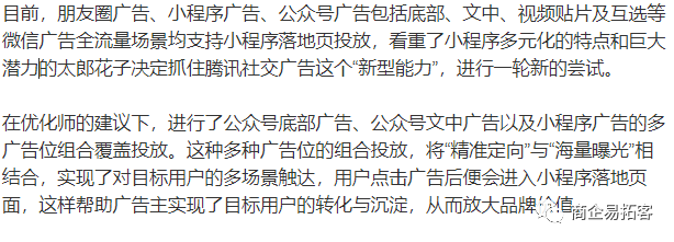 当客户首次点击广告进入小程序后,它就会长期出现在用户微信搜索框上方的下拉框、小程序页、使用过的小程序等位置。这种可以留存于用户微信内的特殊功能大大增加了用户的反复触达几率,再配合广告资源位的精准导流,最终使此次推广的填单率提升20%。