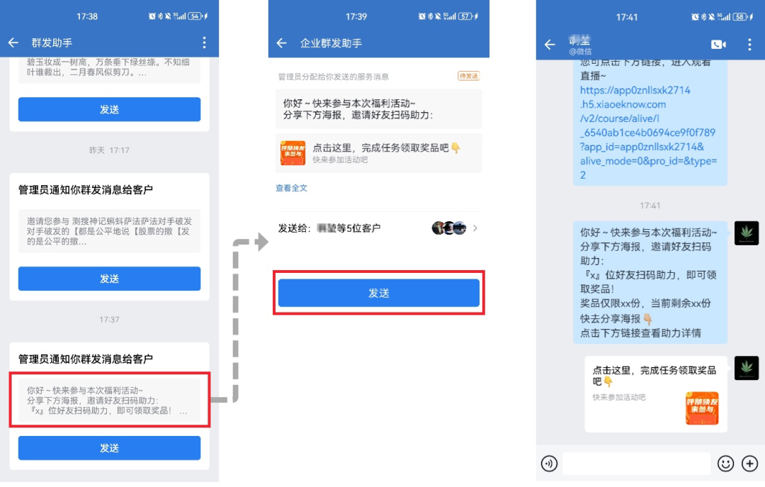6、好友裂变-商家可以通过有吸引力的奖品,以任务海报为依托,借助好友裂变活动玩法,通过设置奖励刺激客户完成邀请好友添加个人号任务,实现客户规模化增长。