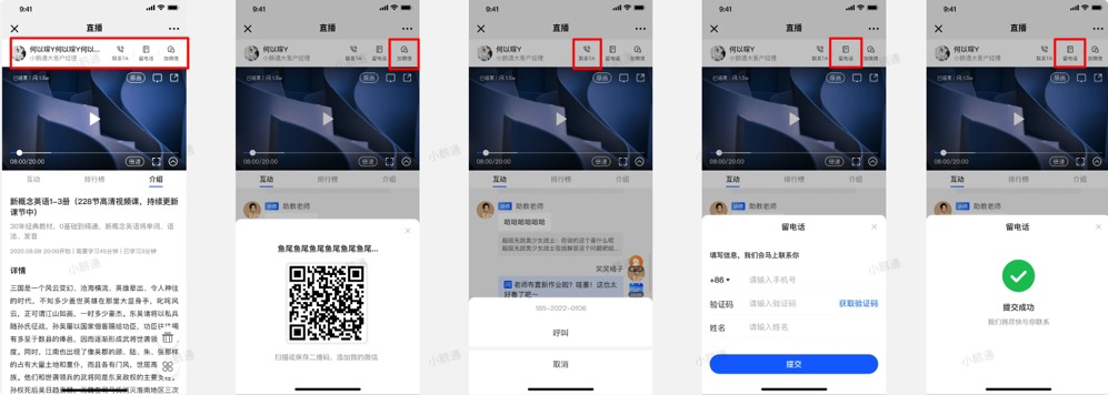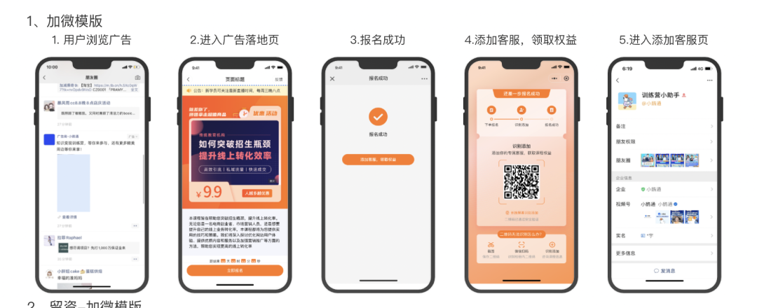 (2)自定义投放落地页:落地页支持配置小鹅通商品、信息采集、引导加微