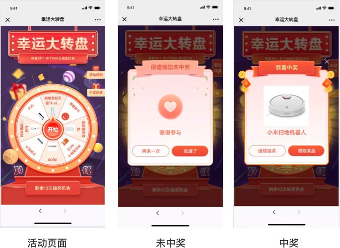 7、抽奖-商家可以利用互动抽奖功能配置大转盘类型的概率抽奖,用于吸引用户加好友、进群,以及保持社群活跃的诱饵,帮助商家更好的进行互动营销