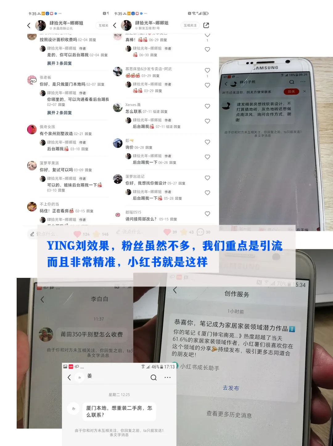 其他运营细节,发布时间,标签,定位都要注意,特别是发布案例的时候,我们要把定位发布在相关案例的小区附近,这样你的客户就很精准,小红书会推荐给附近的人看