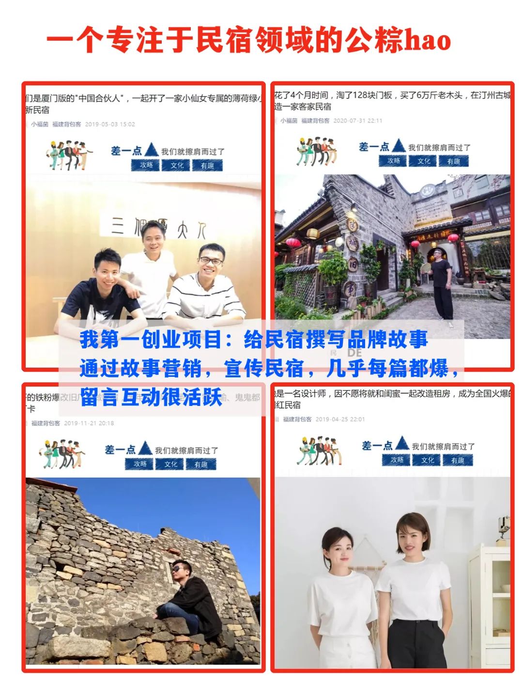 帮助民宿主理人去撰写品牌故事,通过故事营销达到传播民宿的效果,每发一次推文,我们可以卖4~5w的业绩。