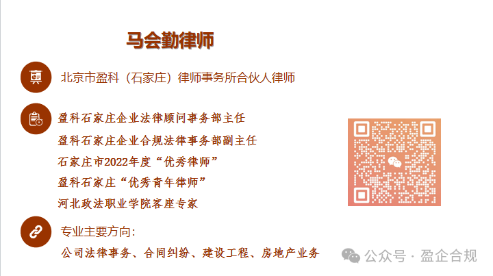 2024年1月15日,北京市盈科(石家庄)律师事务所企业合规法律事务部举办了2024年第二周的部门分享会。本次分享会由马会勤律师主讲,主题围绕“获客、报价与合作分成”。通过这次分享,部门青年律师们收获了宝贵的经验,对未来职业生涯的发展有了更明确的认识。