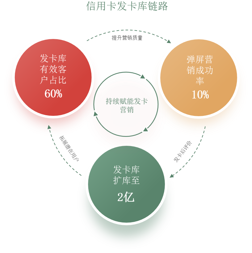 为进一步提高信用卡发卡营销库模型的迭代效率,信用卡中心与上海研发部共同探讨打造信用卡决策管理核心引擎,以支持发卡库优化需求快速上线,进一步提升发卡库迭代时效性。在未来的发展中,将持续推进发卡库客群优化和分行差异化工作,提升目标客户识别精准度和营销渗透率。同时着重挖掘高端客户数据,联动发卡库调查库,夯实营销数据底座,为打造完善的数据友好型系统夯实数字能力根基。这不仅是数字技术本身的全面升级,更是数字化经营带来的客户体验、业务办理的全面深刻提升,让数据思维贯彻业务经营始终,让业务数据真正成为经营要素,进而驱动信用卡业务经营发展的各个方面,持续深入地更好解放和发展数据生产力,以优质高效的金融服务为全面推进中国式现代化建设做出更大贡献。