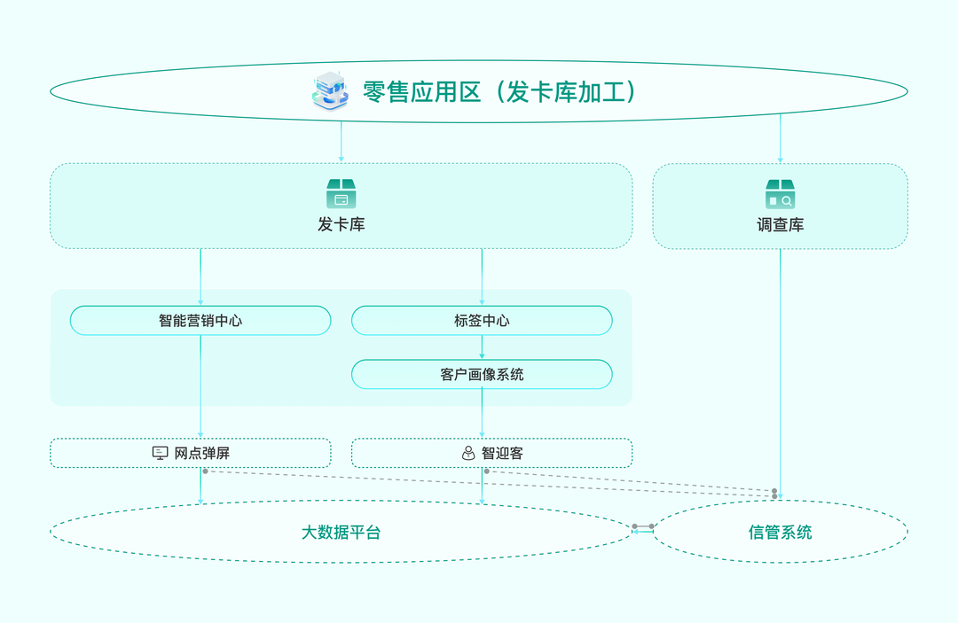 此次升级在零售数据应用区内部信用卡发卡营销库模型、信用卡调查库、弹屏营销报表形成一套组合拳,将大数据挖掘成果贯穿营销全流程,完成信用卡获客、营销、审查审批、营销后统计分析的数字化量化闭环,为我行信用卡业务经营注入了智慧数据的新动能。
